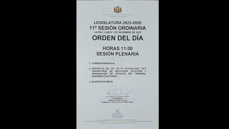 La Cámara de Diputados convocó para este lunes a las 11:00 a sesión plenaria para tratar proyecto de ley para la selección, designación y elección de vocales del Tribunal Supremo Electoral (TSE).