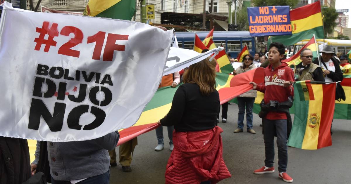[Foto archivo: AFP] / Una de las marchas que se realizon en 2018 en rechazo la repostulación de Morales y recordando el resultado del 21F.