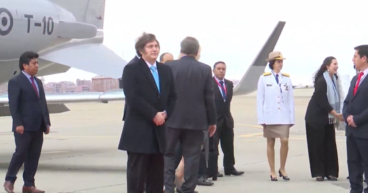 El presidente argentino Javier Milei fue el último mandatario en arribar a la ciudad de La Paz para participar de la transmisión de mando