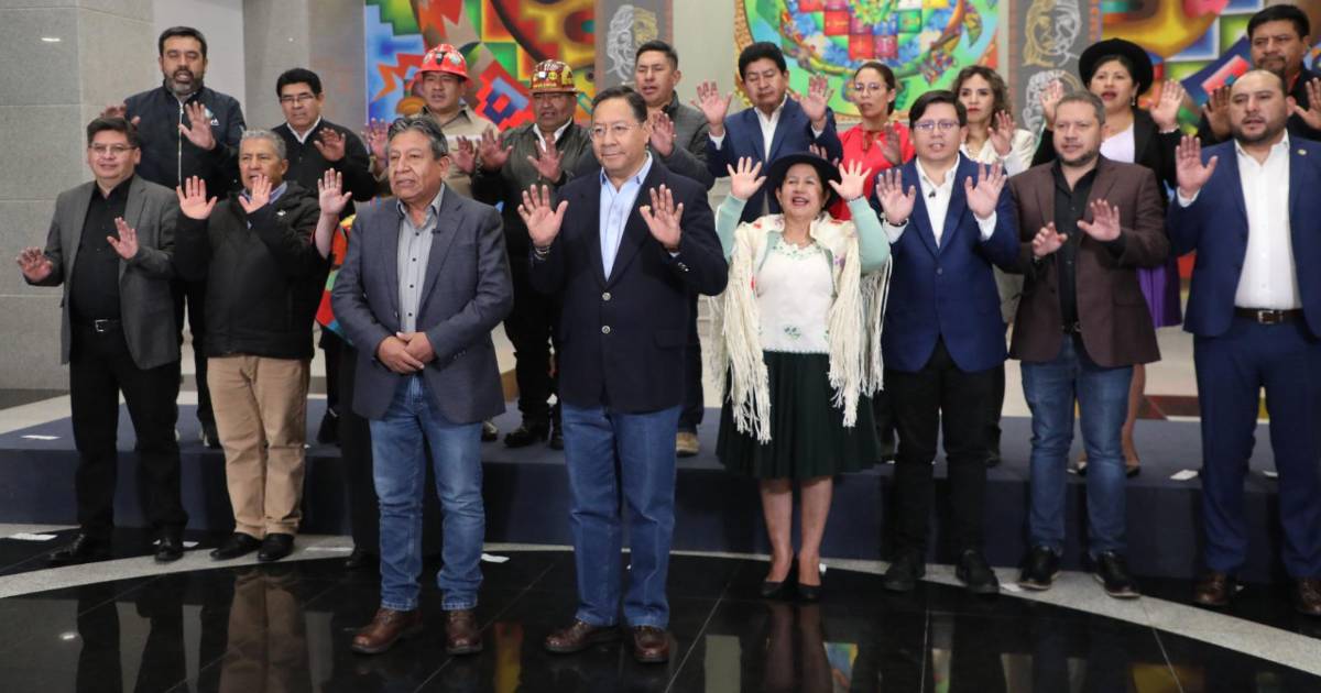 A horas de dejar el cargo, el presidente Luis Arce brindó un mensaje flanqueado por su vicepresidente David Choquehuanca y su gabinete.
