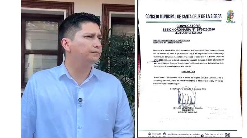 El titular del Concejo remarcó que la convocatoria no responde a intereses personales ni a disputas internas, sino a la necesidad de dar solución a problemas urgentes de la capital cruceña, como la crisis sanitaria por el chikungunya y la influenza, el mantenimiento inconcluso de colegios y hospitales o la paralización de obras públicas.