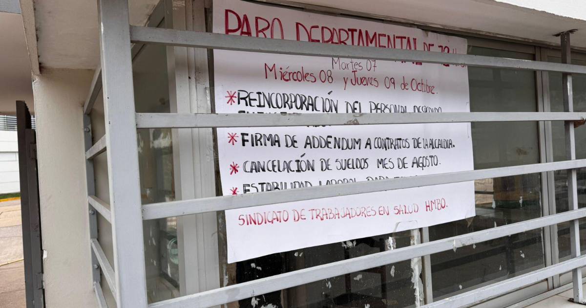 Este martes arrancó el paro de salud en centros y hospitales cruceños. La medida, que se anunció se acatará hasta el jueves 9 de octubre, es protagonizada por los trabajadores, que tienen demandas dirigidas a la Alcaldía de Santa Cruz de la Sierra, la de Urubichá y la Gobernación.