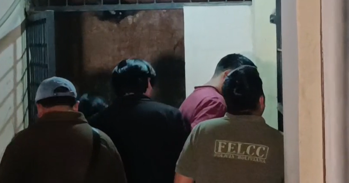 La Fuerza Especial de Lucha Contra el Crimen (Felcc) trasladó a los sospechosos hasta sus dependencias en el municipio de Quillacollo, donde esperarán hasta ser puestos ante un juez cautelar.