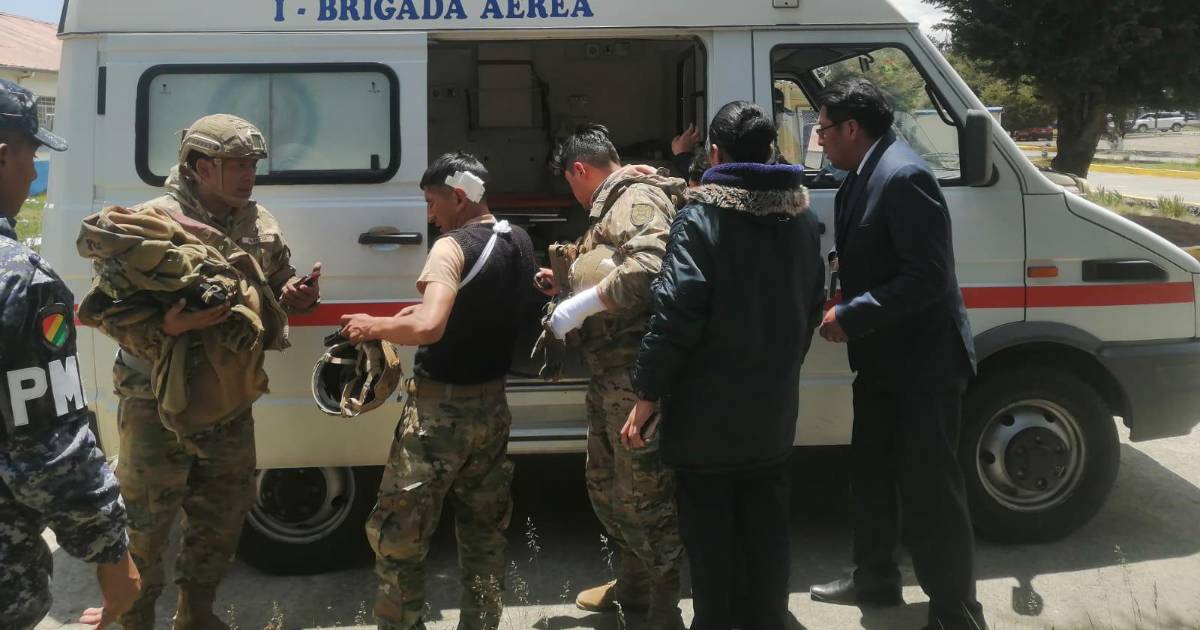 Efectivos del CEO fueron interceptados en la ruta a Viacha por unas 50 personas, quienes hicieron detonar dinamita y lanzaron piedras a los cinco vehículos que se estaban escoltando desde el municipio de Curahuara de Carangas. Dos militares están heridos