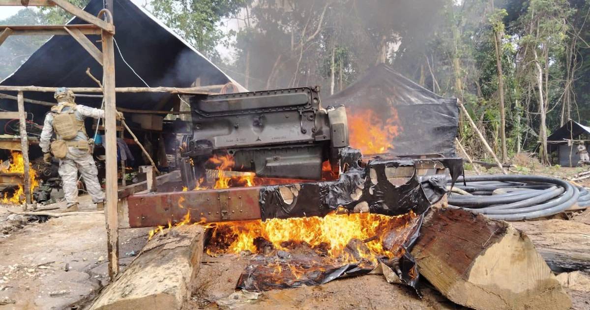Asimismo, enfatizó que, para impedir la continuidad de esta actividad ilícita y la reincidencia operativa, se procedió a la quema y destrucción de todas las embarcaciones, dragas artesanales y artefactos utilizados en la explotación ilegal dentro del sector intervenido.