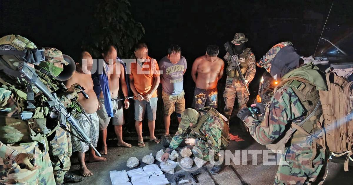 Cinco personas fueron aprehendidas en flagrancia en posesión de sustancias controladas y con al menos cuatro armas de fuego durante un operativo realizado en la zona de San Gabriel, en Villa Tunari, zona del trópico de Cochabamba.