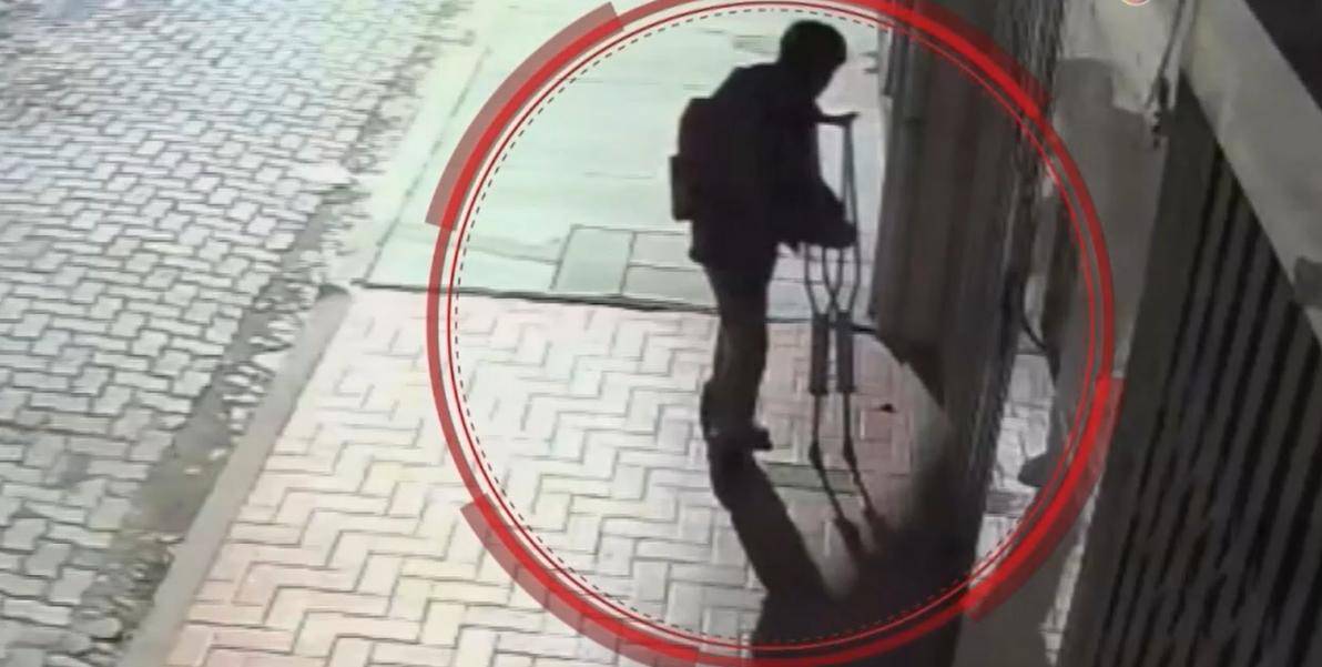 En las imágenes se observa cómo el hombre utiliza la muleta para extraer las tapas y luego guardarlas en una mochila. Los robos se registraron en horas de la noche y han generado preocupación entre los vecinos.