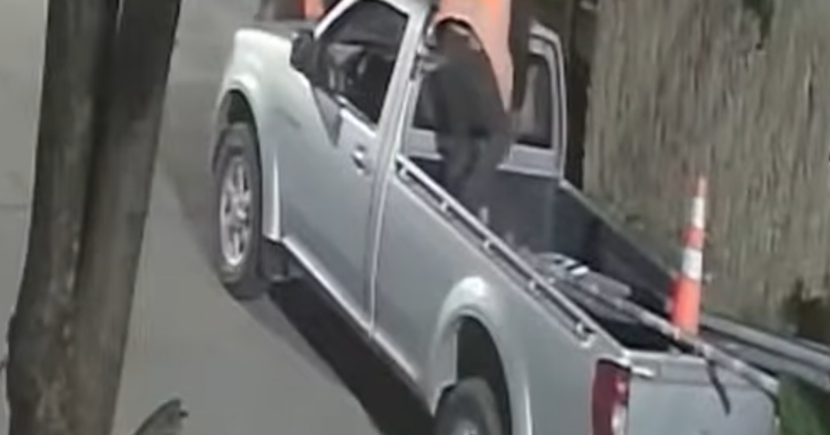 Videos de cámaras de seguridad otorgadas por los vecinos el 26 de enero captaron el momento en que estos sujetos, a bordo de una camioneta, sustraen postes, señalizaciones, cables, entre otros objetos.