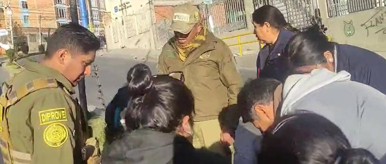 Padres de familia denunciaron que dos niños fueron atropellados por un vehículo, donde estaban abordo policías de la Dirección de Prevención e Investigación de Robo de Vehículos (Diprove), de La Paz. Este hecho sucedió la mañana del martes en el carril de bajada de la avenida Mario Mercado.