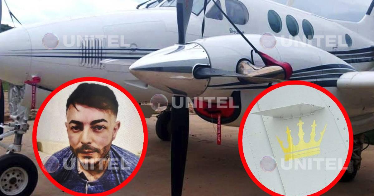 [Foto: UNITEL] / Sebastián Marset, el avión incautado en Bolivia y la corona identificada como su sello.