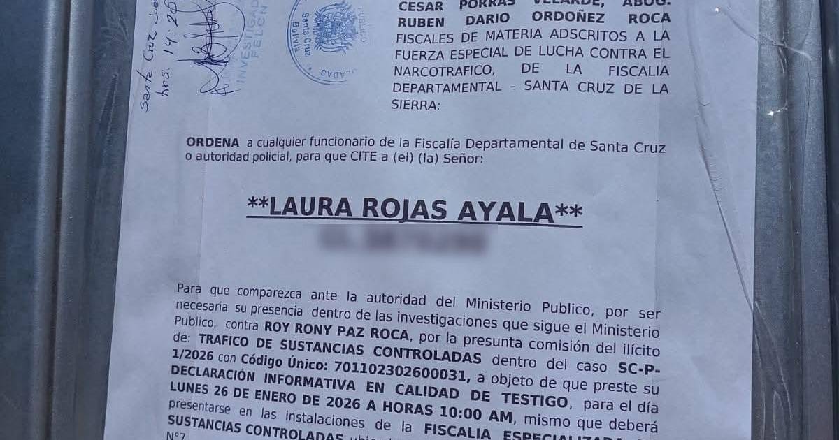 La exdiputada y candidata a concejal, Laura Rojas, tiene citación para presentarse ante el Ministerio Público la mañana de este lunes para declarar, en calidad de testigo, por la investigación que está en marcha por la droga hallada en un galpón de propiedad del juez Hebert Zeballos.