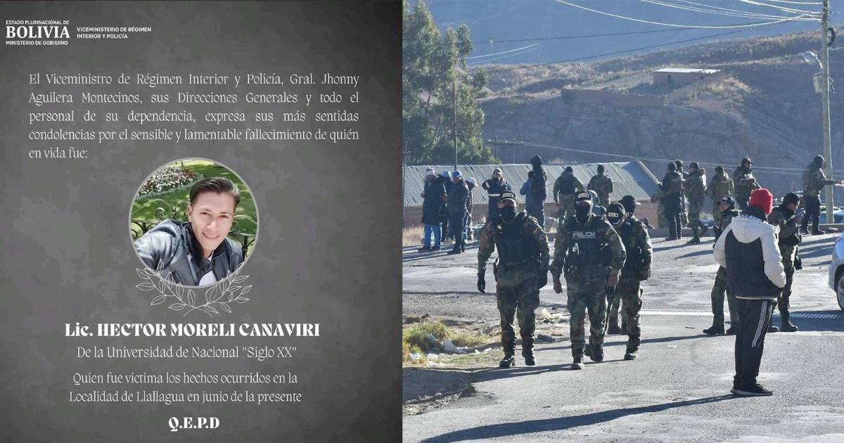 El ministro de Gobierno, Roberto Ríos, informó este lunes el fallecimiento de Héctor Moreli Canaviri, el universitario de 38 años, que fue agredido durante el bloqueo evista ocurrido en junio en Llallagua, en el norte de Potosí.