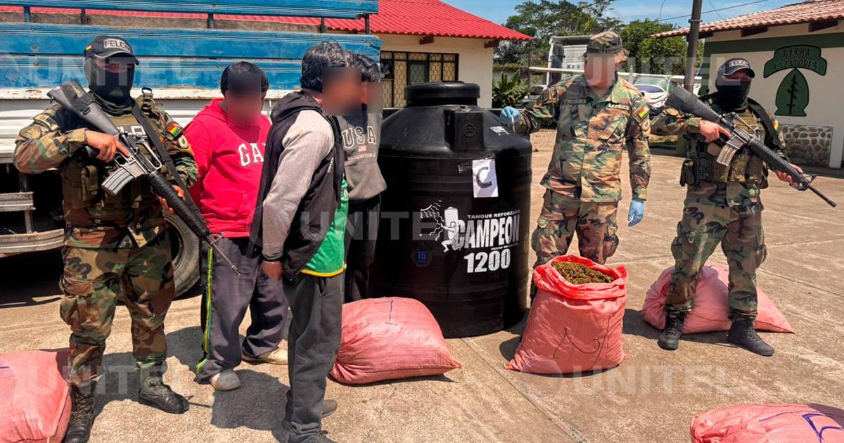 La Fuerza Especial de Lucha Contra el Narcotráfico (Felcn) aprehendió en Cochabamba a tres personas que llevaban más de 300 kilos de marihuana ocultos en tanques de agua.