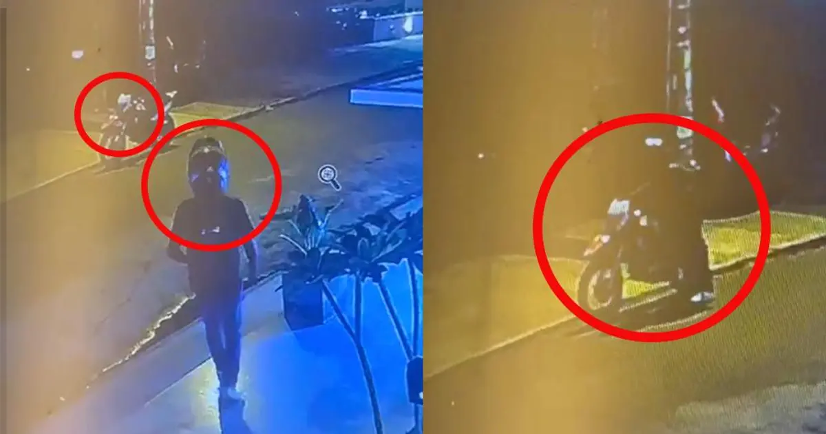 Cámaras de seguridad captaron el momento exacto en el que un desconocido se lleva un moto que estaba en la zona de Equipetrol, en la capital cruceña, mientras su dueño cenaba en un restaurante