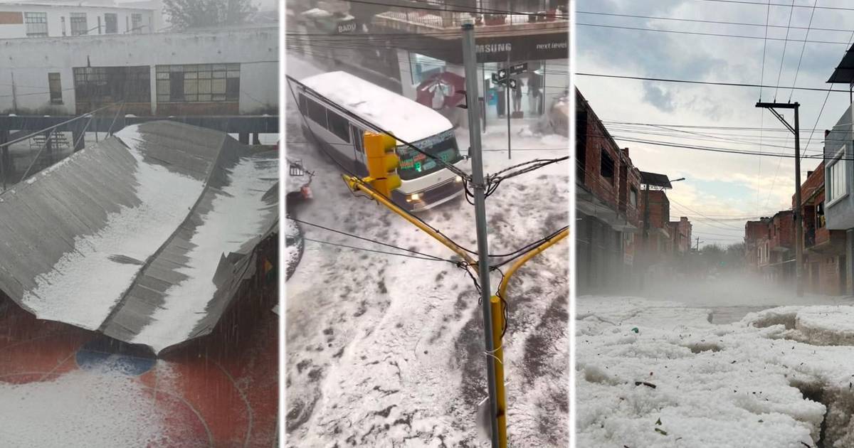 Usuarios de redes sociales reportaron casos de que el granizo acumulado llegó a un metro de altura y que se tuvieron que usar palas para realizar la limpieza.