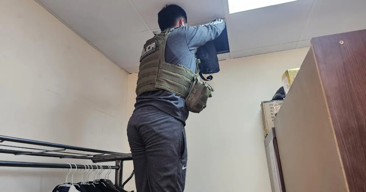 “Según información procesada por el Departamento de Inteligencia, se intervino el espacio asignado a la Segunda Ejecutiva de la FUL–UPEA, hallándose una maleta oculta en el cielo falso, que contenía 1 paquete forrado con cinta masking (cinta adhesiva) color verde”, escribió la autoridad en su cuenta de Facebook.