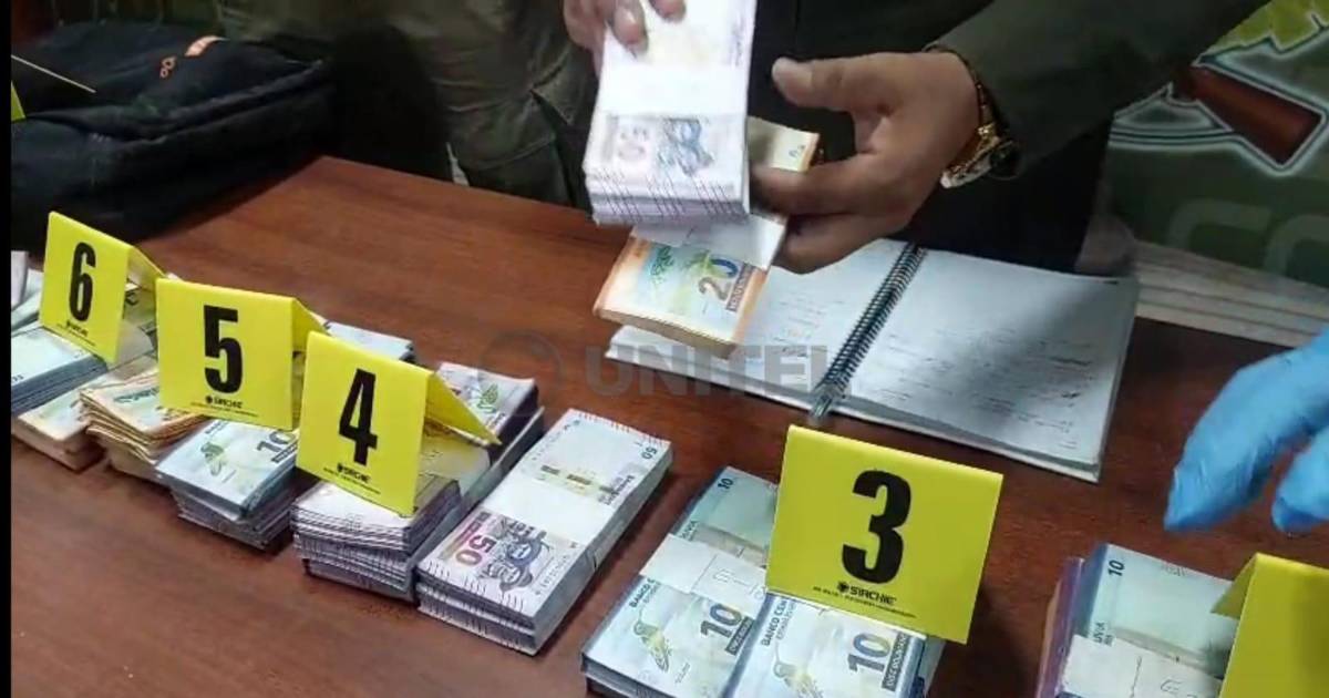 El aprehendido tiene 23 años y en principio fue descubierto con una mochila donde tenía 9.400 bolivianos. Luego, la Policía decidió ingresar a un inmueble en la zona de Tilata, que era habitado por este joven, donde hallaron otro monto de dinero que estaba en una bolsa.