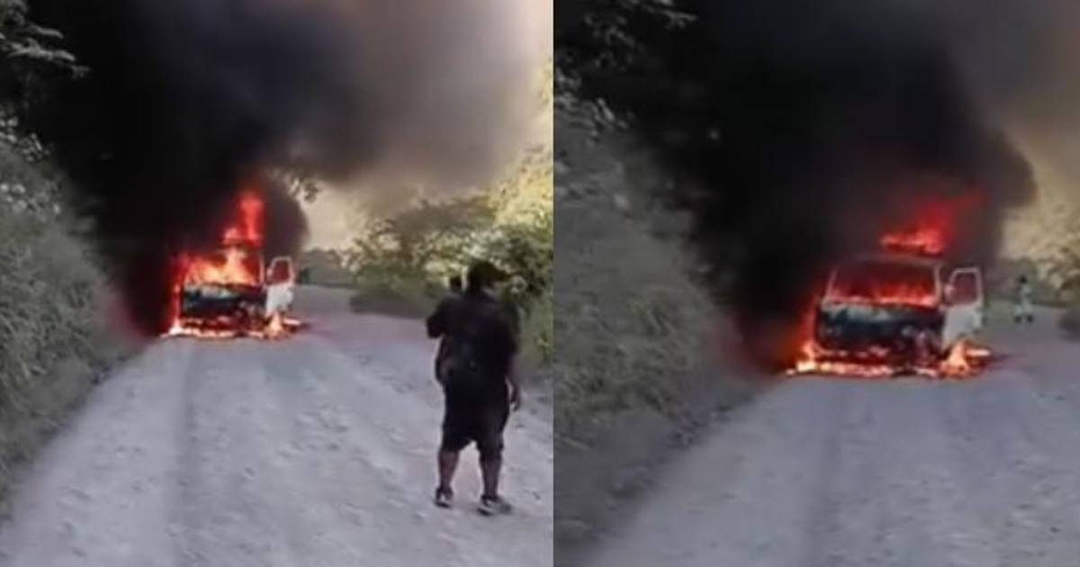 En las imágenes, que circulan en redes sociales, se observa cómo el motorizado arde en llamas ante la presencia de sus propietarios, quienes no pudieron sofocar el incendio debido a que se encontraban en medio del camino carretero.