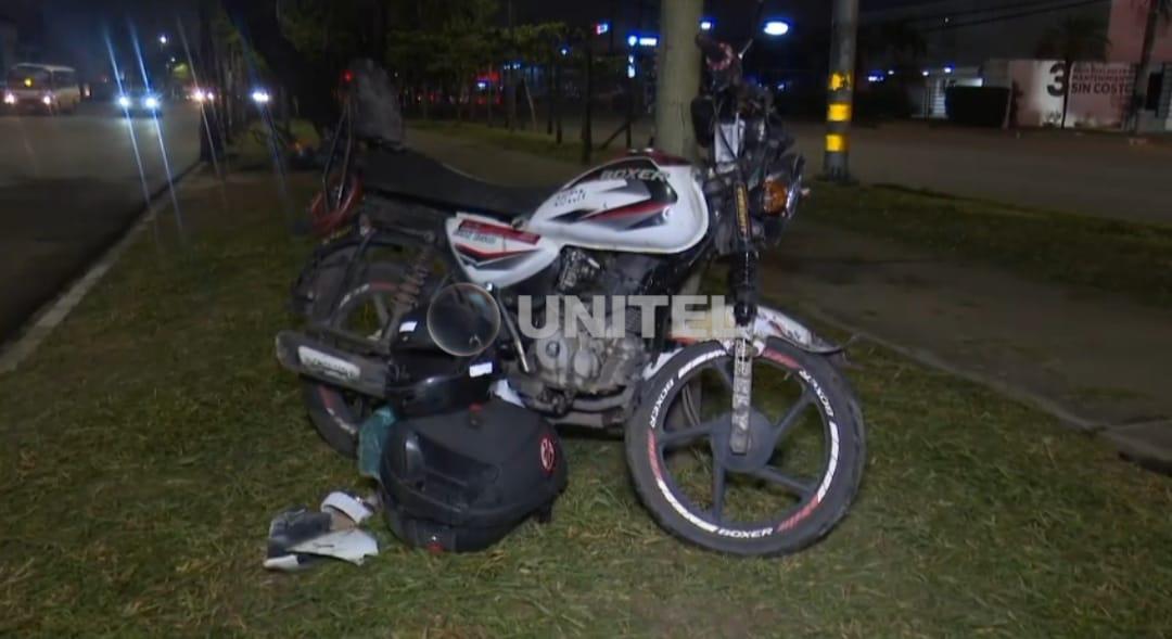 [Foto: Joel Orellana- UNITEL] / La motocicleta en la que se trasladaban tres personas