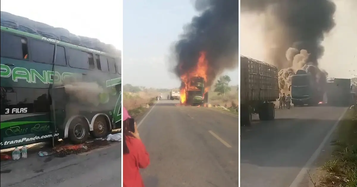 Reportan el incendio de una flota en plena ruta Santa Cruz – Trinidad