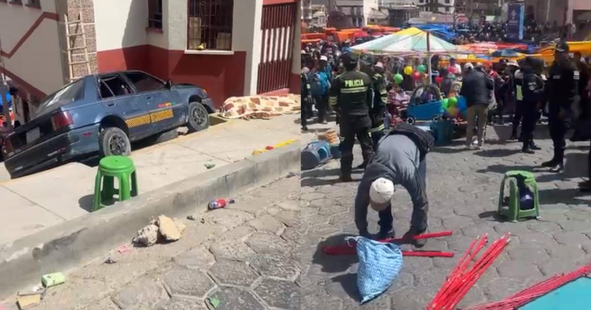 De acuerdo al reporte preliminar, un vehículo conducido por un joven perdió el control y chocó contra puestos instalados cerca de la Basílica del Socavón y luego se estrelló contra una vivienda.