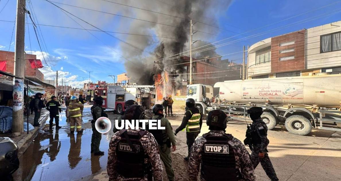 “Aún no tenemos las causas, las unidades de la Policía y Bomberos se han desplazado. Vemos que hay material inflamable, no podemos determinar si es gasolina, diésel o aceite”, informó el subcomandante de la Policía de Chuquisaca, Luis Zenteno.