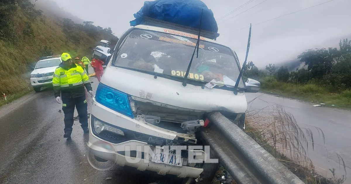 Trágico accidente: Minibús con pasajeros se estrella contra una barrera de metal y deja tres fallecidos en los Yungas