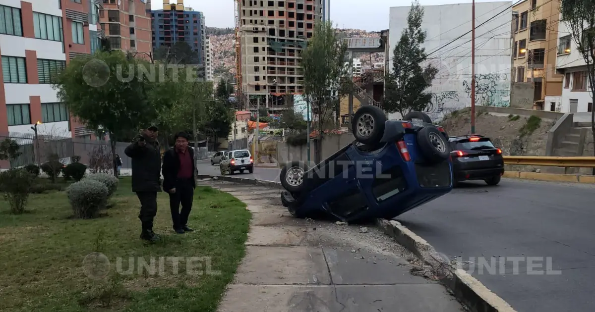 El segundo hecho se registró en la avenida Kantutani, que une el centro paceño con la zona sur. En este caso, una vagoneta terminó volcada en una curva debido a aparentes fallas mecánicas, según el conductor.