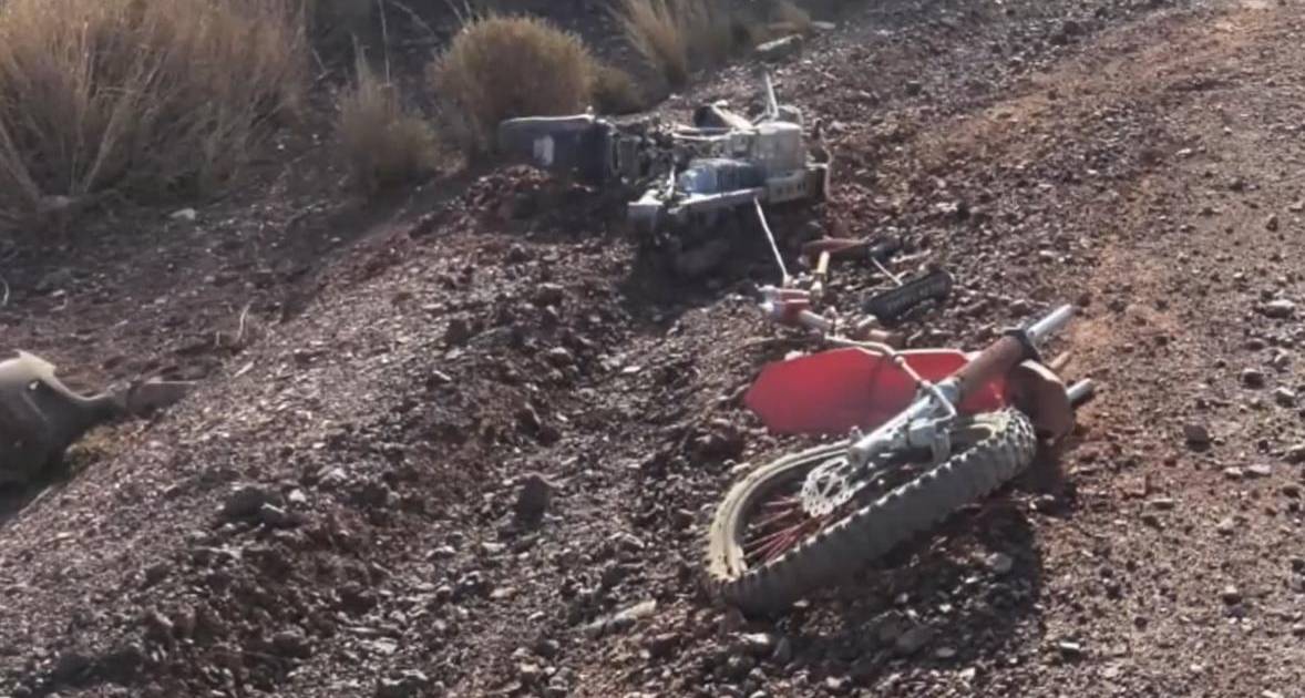 En las imágenes se observa que la moto terminó siniestrada al costado de la carretera.