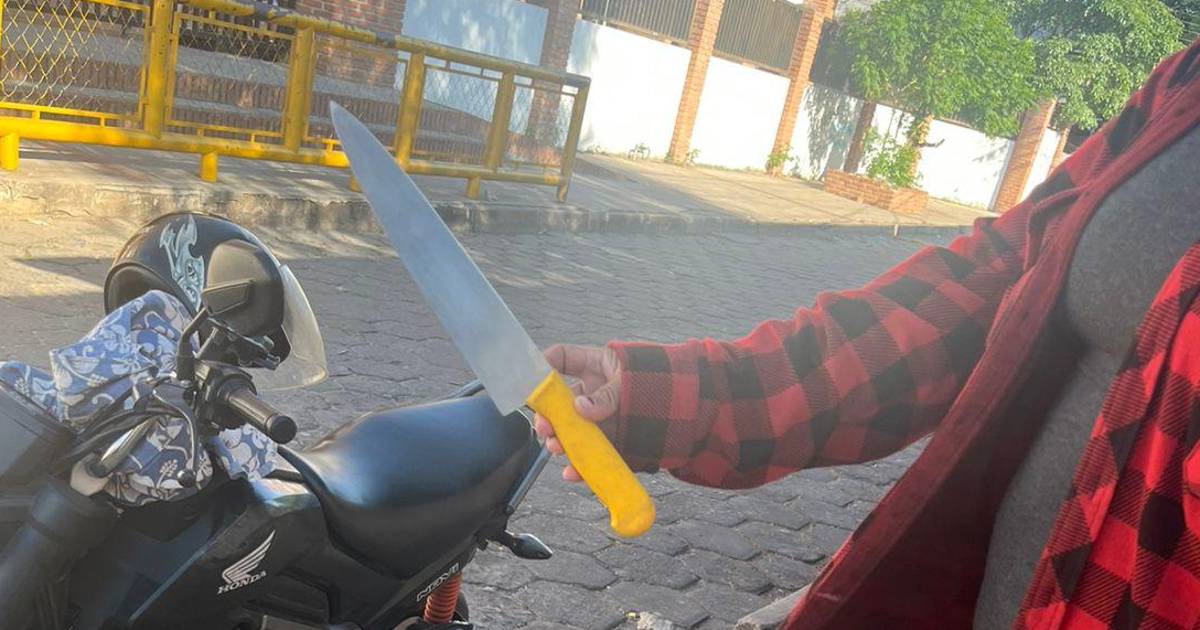 Sin embargo, en el forcejeo el delincuente hace caer su cuchillo que rápidamente es arrebatado por la víctima que segundos después logra ponerse de pie. Ante esto el sujeto huyó en una motocicleta que tenía su cómplice.