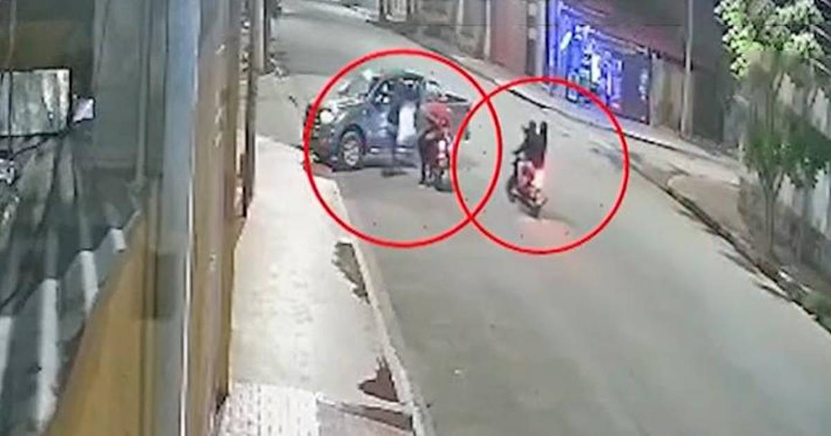 Los videos de las cámaras de vigilancia muestran como tres de los antisociales terminan huyendo con la camioneta por una de las calles y sus cómplices, que estaban en motocicleta, escapan por el lado contrario.