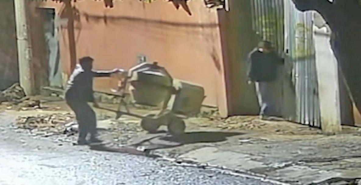 Video: Delincuentes son captados llevándose una mezcladora y otros objetos de una construcción