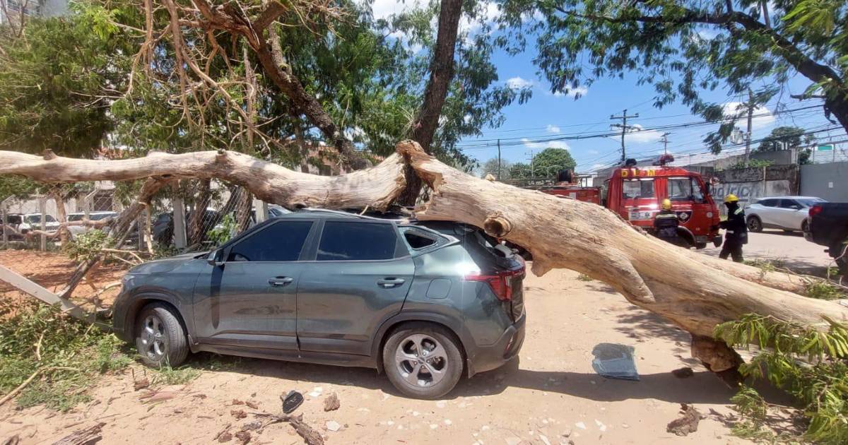 Árbol cae sobre un vehículo y daña el techo por los fuertes vientos en Santa Cruz