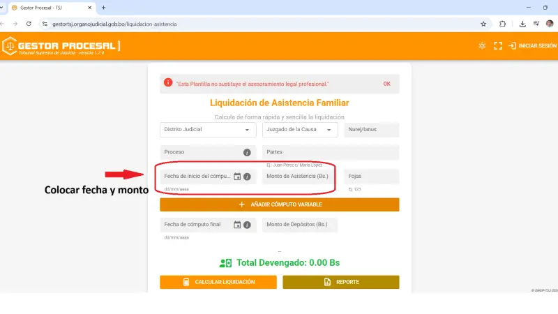 4.- Introducir la fecha de inicio del cómputo de la asistencia familiar.