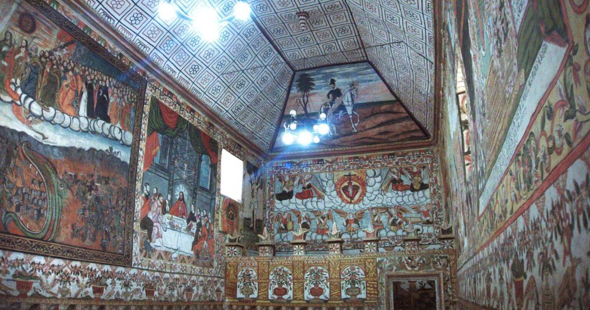 Las paredes y techos están recubiertos de pinturas con escenas bíblicas que datan de 1777, según atestigua un documento en poder de las autoridades municipales de Curahuara de Carangas.