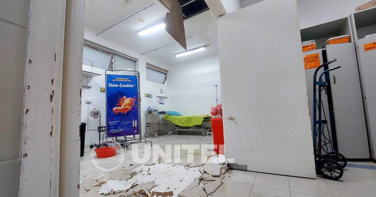La intensa lluvia que cae en la capital cruceña desde la madrugada de este domingo ha causado afectaciones en varios sectores de la ciudad. En la zona de El Bajío, el techo del Hospital Municipal colapsó provocando que toda el agua ingrese a las instalaciones.