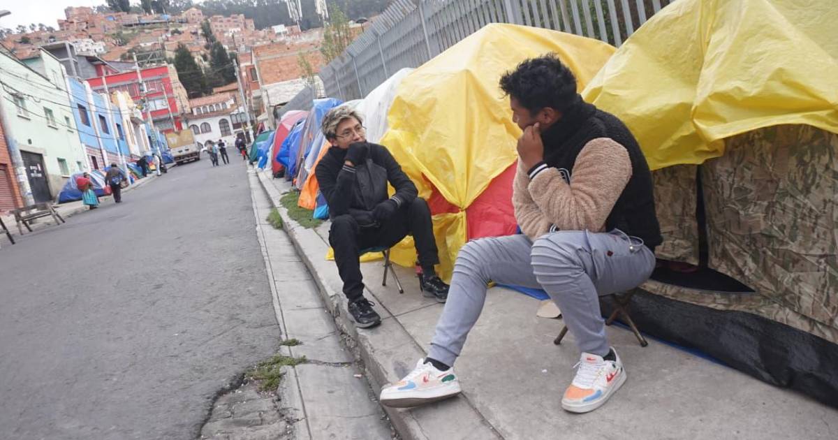Ante ello, este miércoles en la calle Calama, donde está el ingreso de una unidad militar, en La Paz, se observa varias carpas de personas, que aseguran están durmiendo varios días en el lugar con la esperanza de conseguir un cupo. La fila cubre varias cuadras y los postulantes están acompañados, en muchos casos, por sus padres. Hay personas que esperan en el lugar desde el lunes 12 de enero.