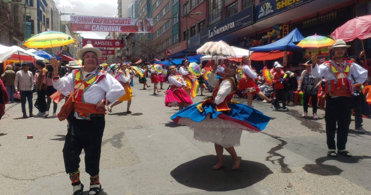 Alrededor de 65 fraternidades recorren las principales calles del centro paceño en la festividad carnavalera que se extenderá hasta las 20:00