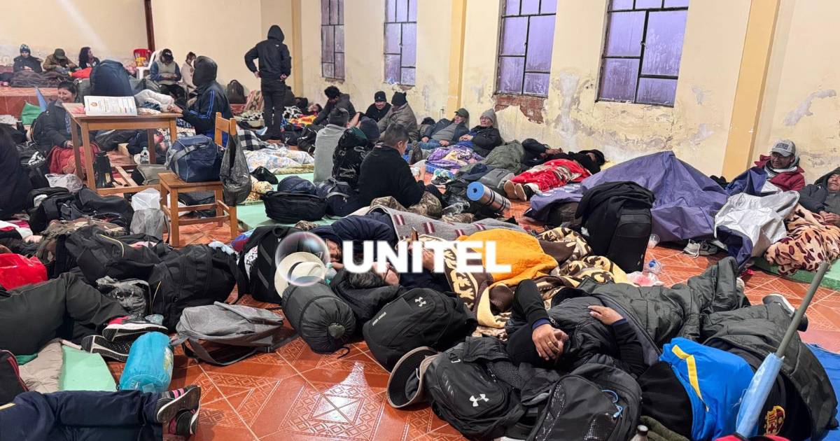 “Por las condiciones climáticas nos estamos agripando, pero hoy nos vamos a trasladar una mayor distancia, pero con la convicción firme de que los maestros vamos a lograr nuestros objetivos”, dijo uno de los dirigentes a la red UNITEL.