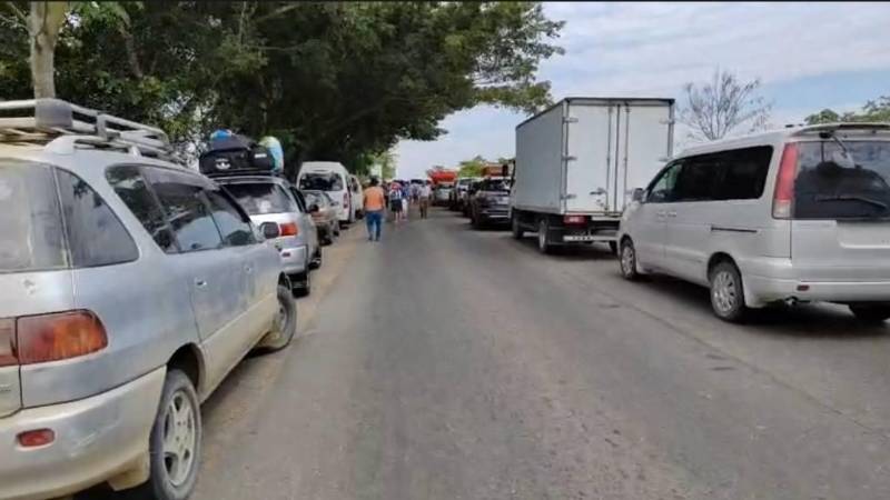 La medida de presión ha provocado que se forma una larda fila de vehículos sobre esta vía, mientras que varias personas se ven obligadas a caminar una extensa distancia para poder pasar el bloqueo y encontrar transporte.