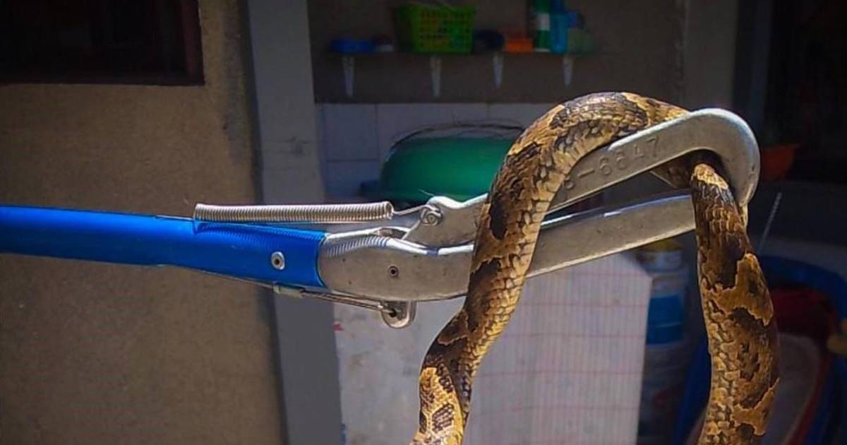 Los propietarios llamaron a personal de Pofoma y estos acudieron al domicilio para el rescate de la víbora.