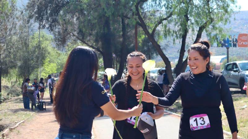 Durante el evento se observó a algunas personas con disfraces y las competidores recibieron flores cuando se acercaron a la meta.