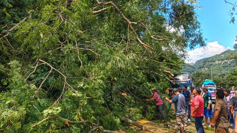 Entre las eventualidades hubo la caída de enormes árboles en el sector que se encuentra entre la Angostura y Bermejo, lo cual afectó la circulación de los vehículos, por lo que los conductores tuvieron que unir fuerzas para poder intentar despejar la vía.