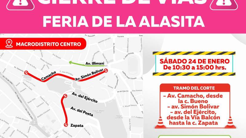 Tres avenidas del centro y las plazas de La Paz se cierran al mediodía de este sábado para recibir la Alasita