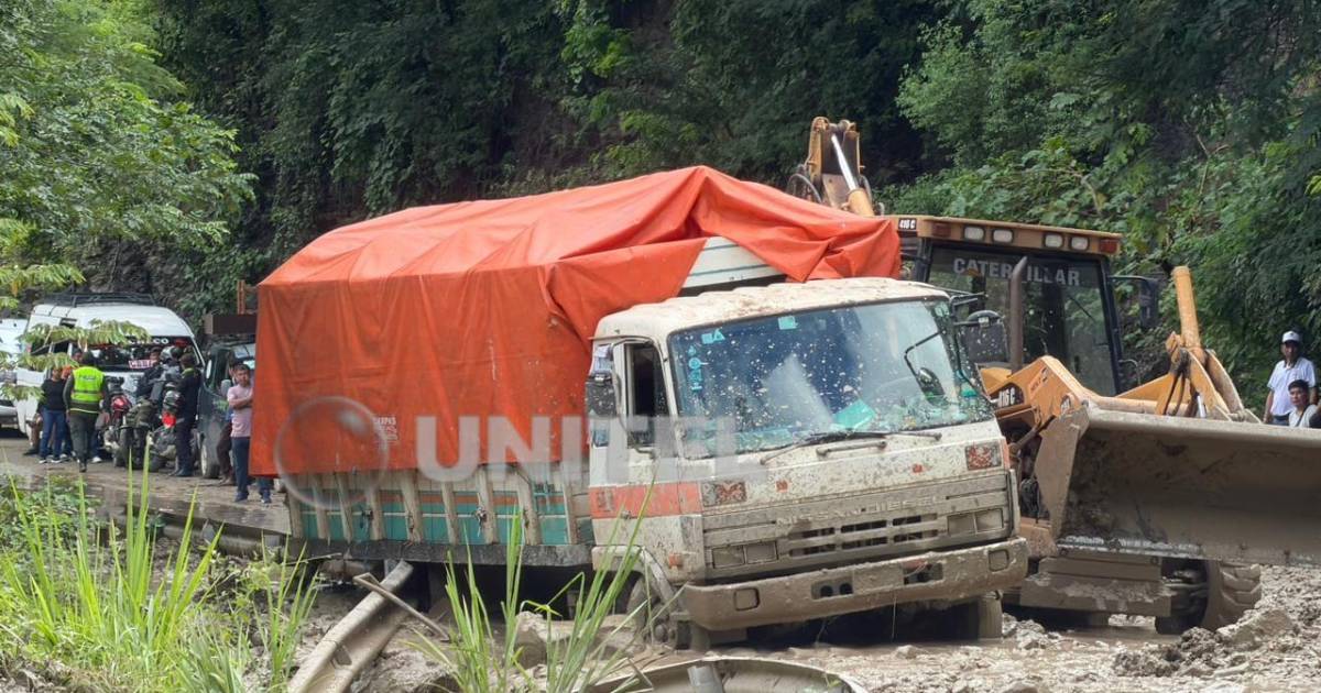 En el lugar hay vehículos livianos y pesados a la altura de la Angostura mientras maquinaria de la ABC realiza trabajos de limpieza.