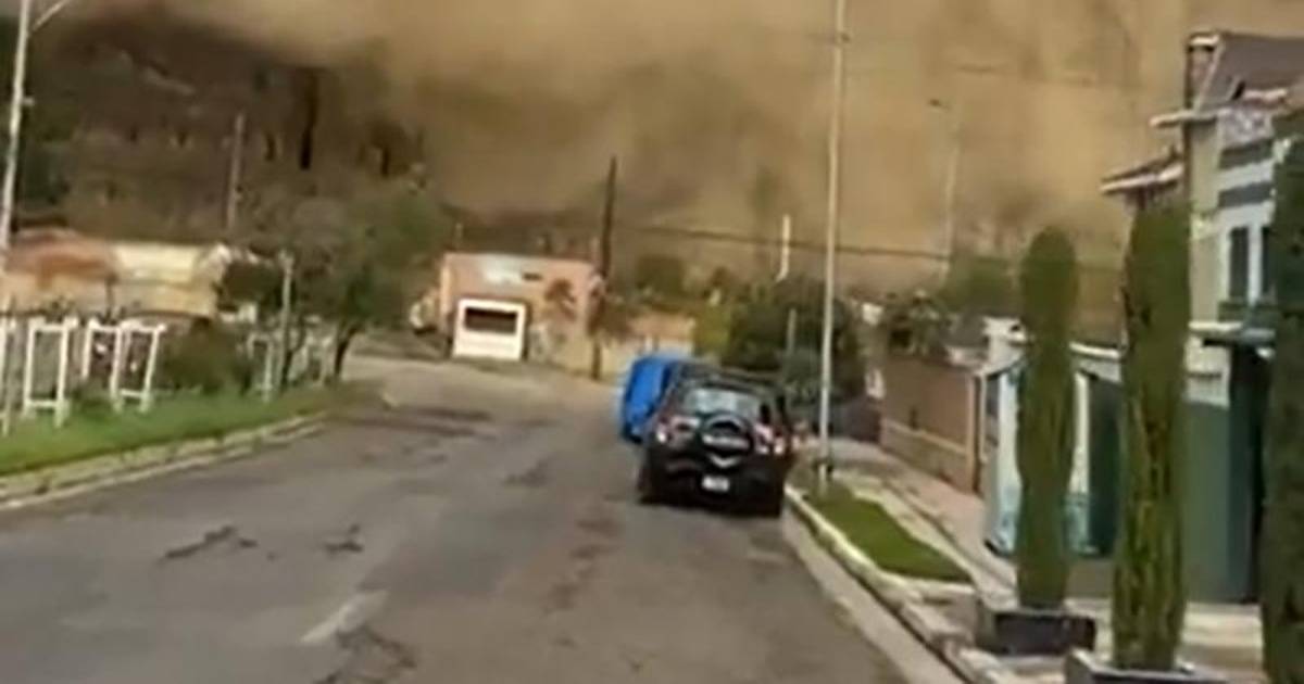 En el video se observa algo parecido a una nube de polvo a causa del deslizamiento.