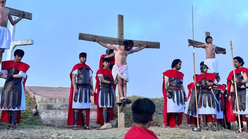 El inicio de la jornada estuvo marcado por la caminata hacia la iglesia de la Virgen de Copacabana, donde los fieles participan en ceremonias que mantienen viva la memoria de la crucifixión.