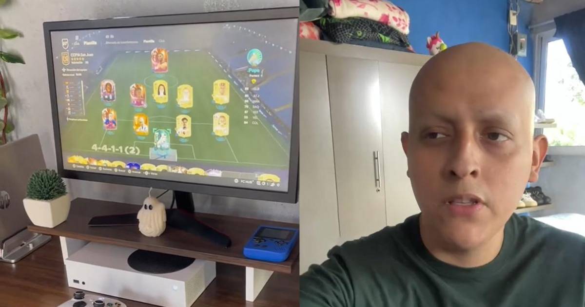 Sin cabello producto de las quimioterapias, Juan de Dios subió un video a TikTok con un mensaje en el que se leía: “Solicito al honorable consejo de hombres autorización para empeñar el Xbox y pagar mi última quimioterapia”.