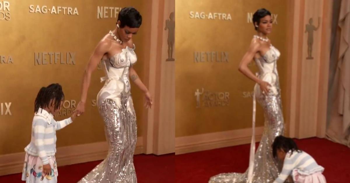 En medio de la elegancia de los Actor Awards, hubo un momento que se llevó todas las miradas, el icónico instante en el que la hija de Teyana Taylor la ayuda a acomodar su vestido justo antes de que la artista y actriz pose para las cámaras.