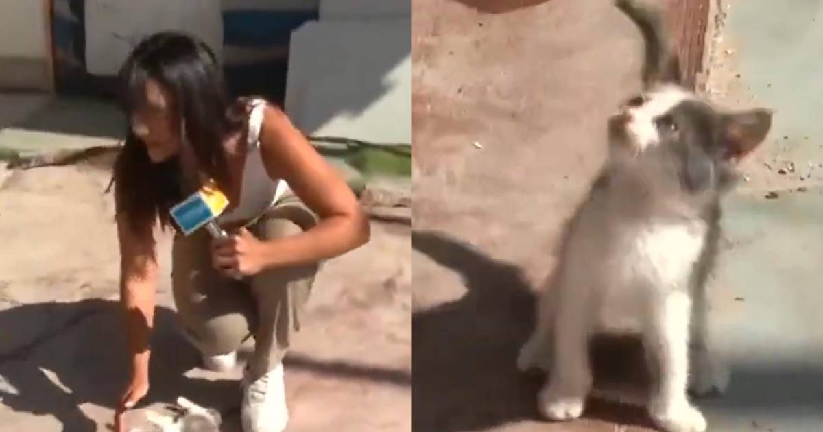 Una reportera estaba por mostrar cómo detenían a 7 delincuentes pero apareció un gatito y salió una noticia más importante pic.twitter.com/i69O85qLD5